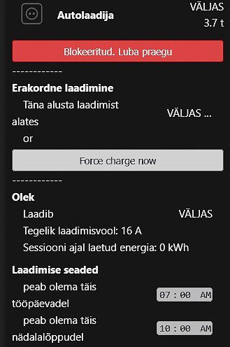 Te ei pea muretsema millisel ajahetkel on auto akut soodsaim laadida, auto laadimise programm jälgib elektri börsihinda ja teie päikesepaneelide tootlust , te määrate vaid täislaetuse kellaaja ülejäänud teeb programm.