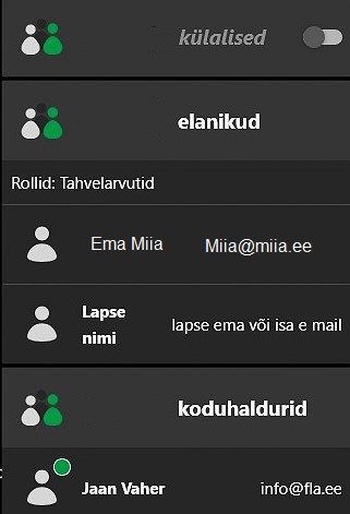 Kasutaja Rolli ja tüübi saab haldaja lisada ja kustutada, need on kas ajatud või ajalise piiranguga. Kasutajate lisamisel on juurdepääsetavus ( rollid ) menüüs eelnevalt ära jaotatud- see hõlbustab koduhalduri poolt lubatavate tegevuste kasutamist teiste kasutajate poolt. Koduhaldur ; Elanik ; Koristaja ; Külaline või Lepinguline partner. NB: Koristaja saab ettemääratud päeval ja ajavahemikus ainult avada uksi ja aktiveerida/deaktiveerid valvet.
