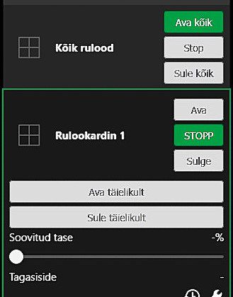 - Elektrilised rulood/nutiaknad – Kas välise UV anduri / hämaraanduri või sisevalgustuse positsioonist juhitavad aknakatted liiguvad ette või eest ära. Teie äraolekul jälgitakse päikese aktiivsust – suvel jahutuse vähendamiseks ja talvel küttekulude vähendamiseks liiguvad aknakatted kas ette või eest ära.